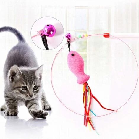 Funny Cat Stick Toy with Bell, Long Wire Mouse, Fish kitten toy, Cat Exercise Play Fun Gifts Cute Bell
