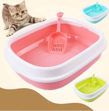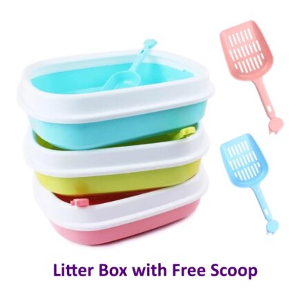 Cat litter box with scoop, Blue, Sky blue, Pink litter tray